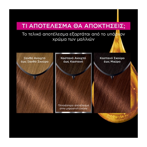 Η 1η μόνιμη βαφή της Garnier, με τη δύναμη του ελαίου το οποίο εισχωρεί μέσα στη τρίχα χαρίζοντας πλούσιο και λαμπερό χρώμα, βελτιώνοντας τη ποιότητα της τρίχας σε κάθε βαφή*.