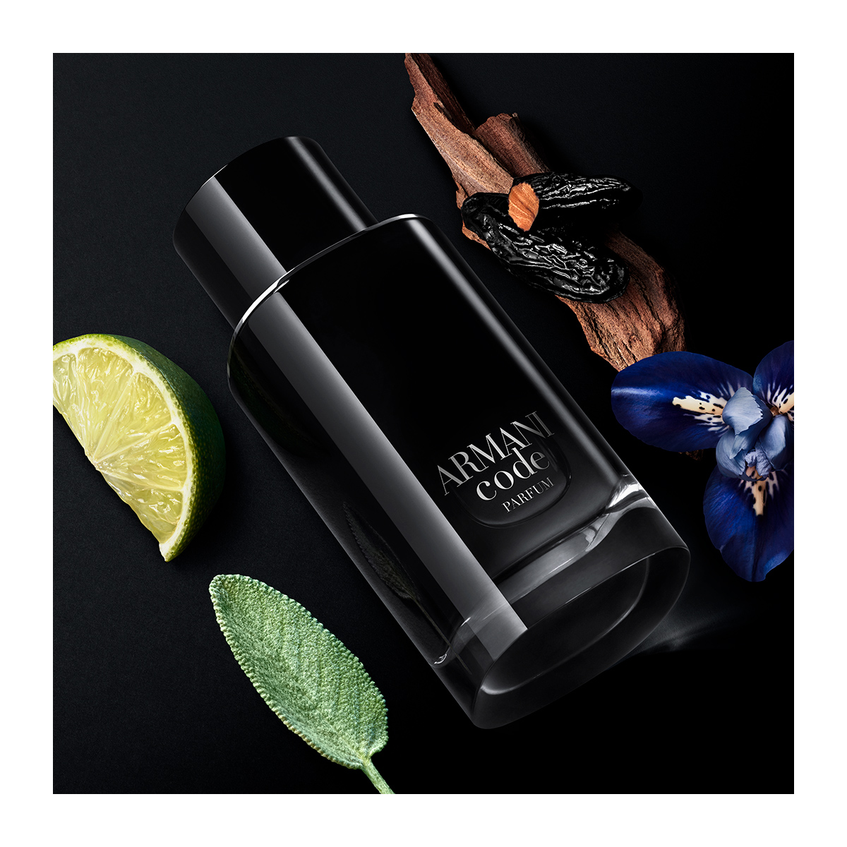 Το ARMANI CODE PARFUM διαθέτει στις καθοριστικές του νότες εκλεπτυσμένα συστατικά φυσικής προέλευσης. Αυτές οι νότες περιλαμβάνουν Vert de Bergamote και καρδιά Περγαμόντου από την Καλαβρία της Ιταλίας. Καρδιά Φασκόμηλου από την Προβηγκία, στη Νότια Γαλλία. Ρετινοειδής Ίριδα από το Μαρόκο. Καρδιά Ξύλου Κέδρου από τη Βιρτζίνια των ΗΠΑ και Tonka Bean προερχόμενο από τη Βραζιλία.