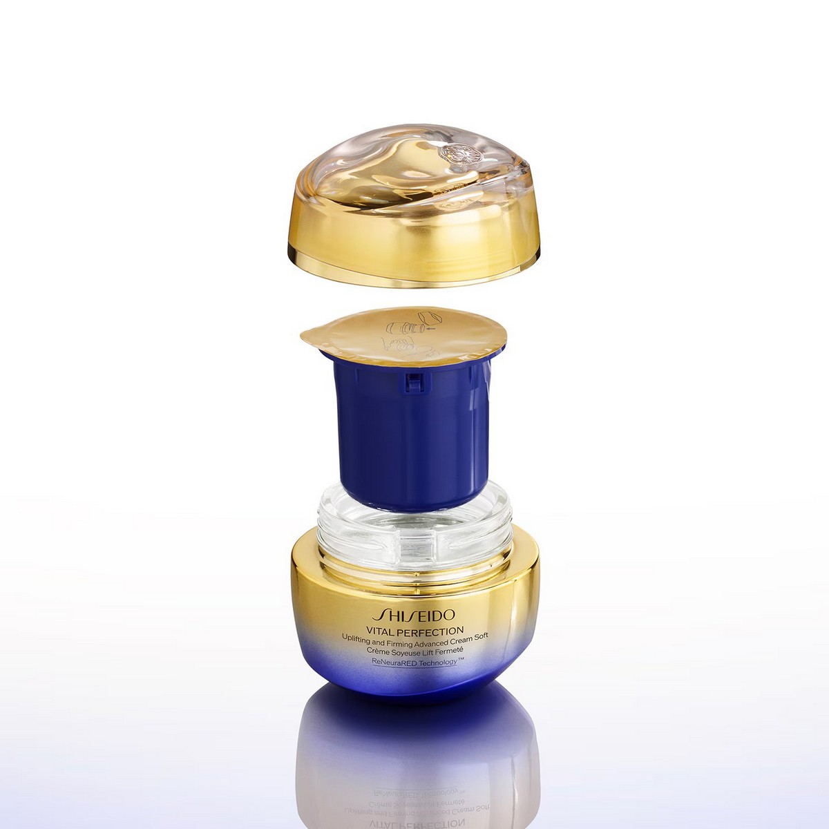 Η επαναγεμιζόμενη συσκευασία της Vital Perfection Uplifting And Firming Advanced Soft Cream μειώνει την χρήση πλαστικών κατά 79% σε σύγκριση με το αρχικό προϊόν.