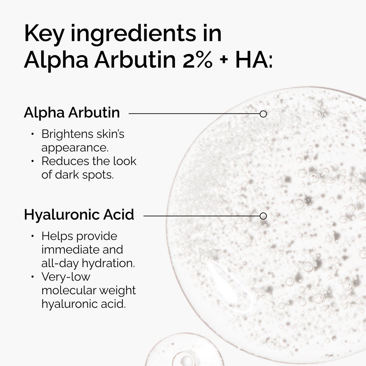 ΣΥΣΤΑΤΙΚΑ: AQUA (WATER), ALPHA-ARBUTIN, POLYACRYLATE CROSSPOLYMER-6, HYDROLYZED SODIUM HYALURONATE, PROPANEDIOL, PPG-26-BUTETH-26, PEG-40 HYDROGENATED CASTOR OIL, LACTIC ACID, TRISODIUM ETHYLENEDIAMINE DISUCCINATE, ETHOXYDIGLYCOL, PHENOXYETHANOL, CHLORPHENESIN.