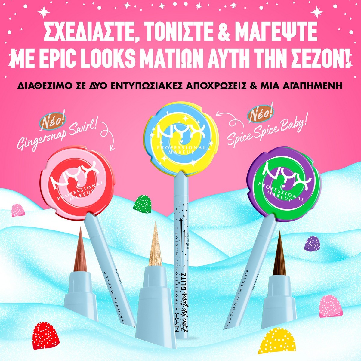 Με εορταστική συσκευασία και σύνθεση υψηλής απόδοσης, το Candy Swirl Liner είναι must-have για το χριστουγεννιάτικο μακιγιάζ σου αλλά και το τέλειο δώρο για τον ή τη makeup lover της καρδιάς σου! Συνδύασέ το με μια αστραφτερή σκιά ή με μεγάλες βλεφαρίδες για ένα look που φωνάζει Χριστούγεννα!
