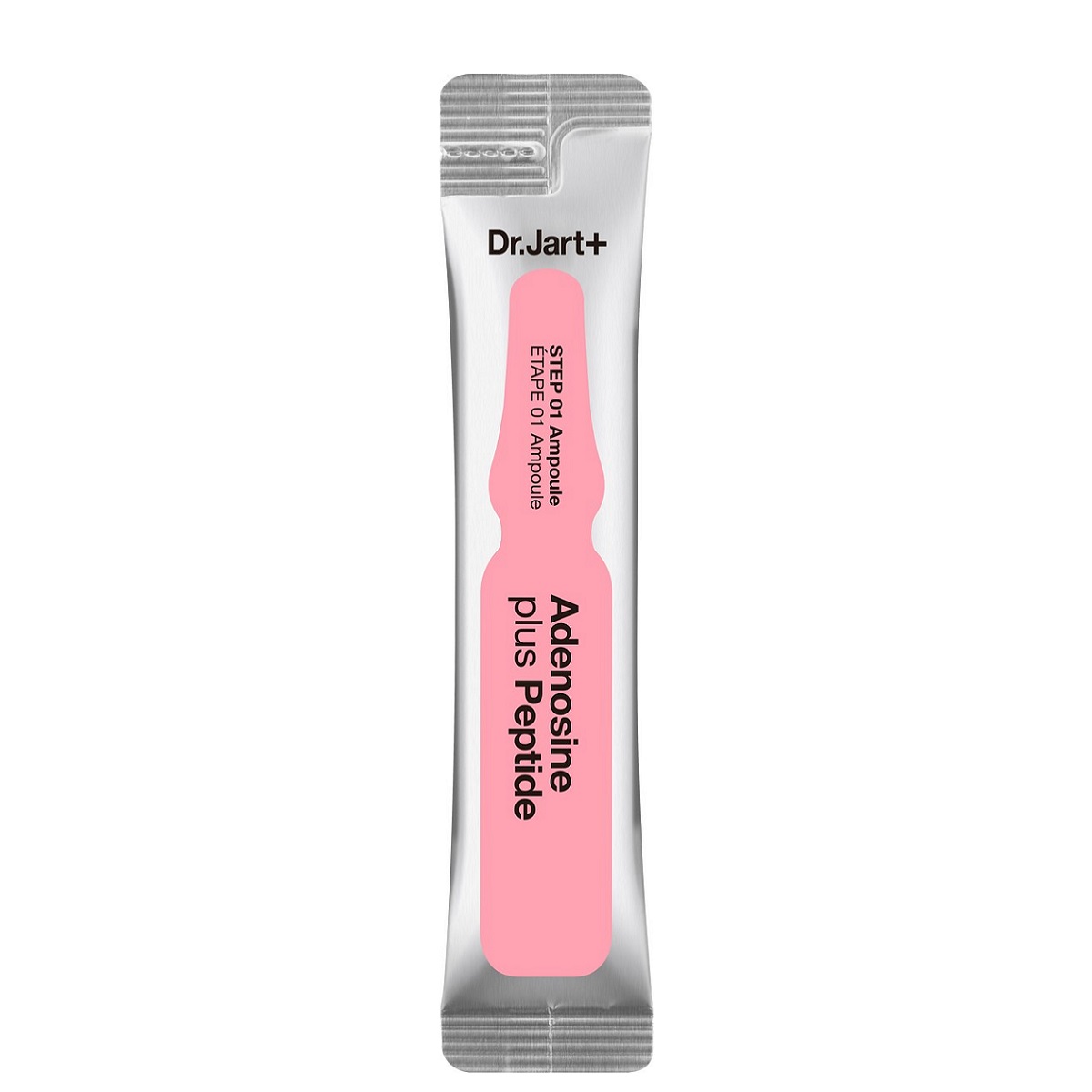Μια μάσκα προσώπου από καουτσούκ που δροσίζει άμεσα την επιδερμίδα και μια συμπυκνωμένη αμπούλα με υφή ορού, με Αδενοσίνη και Πεπτίδια για σύσφιξη και ανόρθωση.