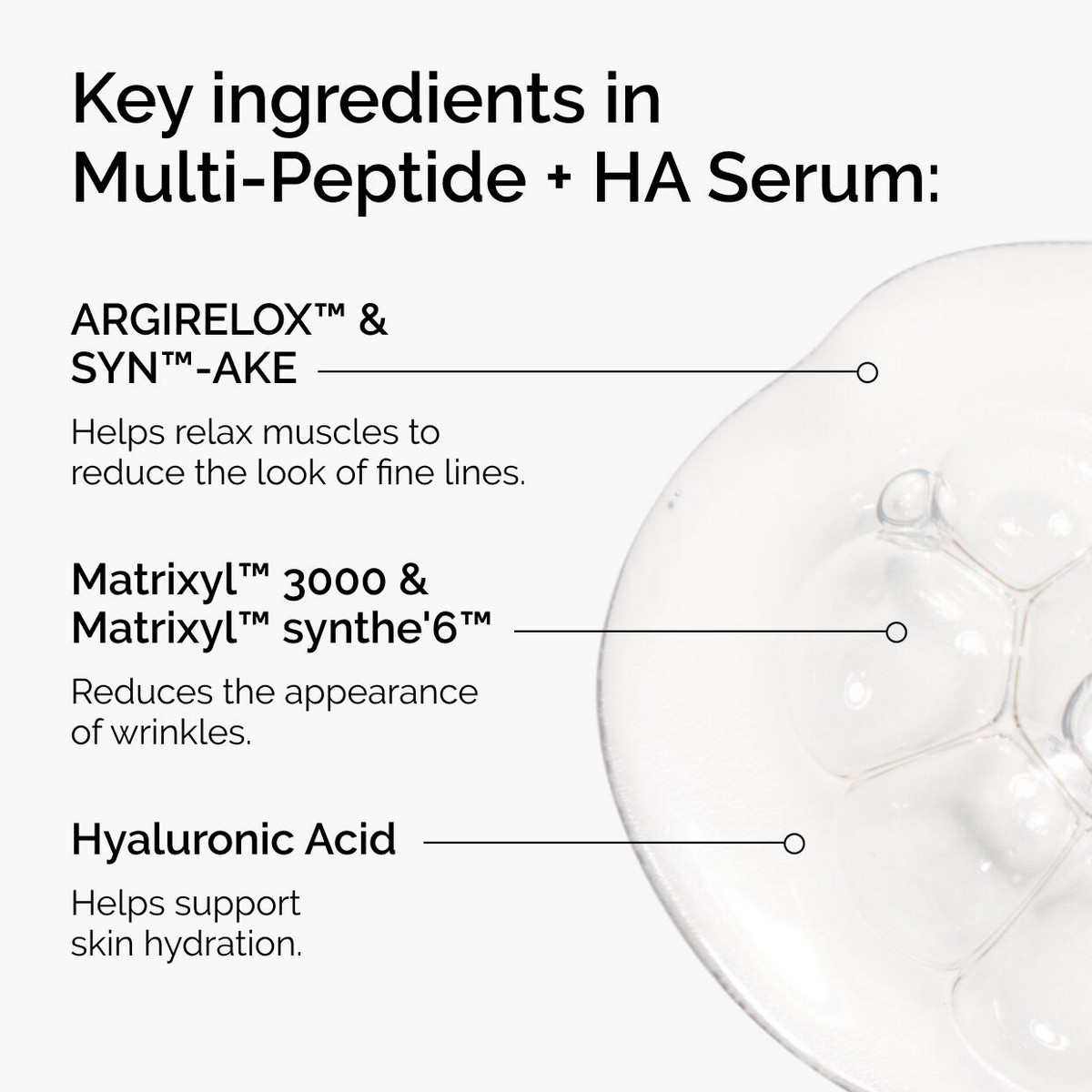 Eνας προηγμένος ορός αντιγήρανσης που αξιοποιεί την ισχύ πολλών πεπτιδικών τεχνολογιών σε συνδυασμό με το υαλουρονικό οξύ για ορατή βελτίωση της συνολικής υγείας και εμφάνισης της επιδερμίδας.