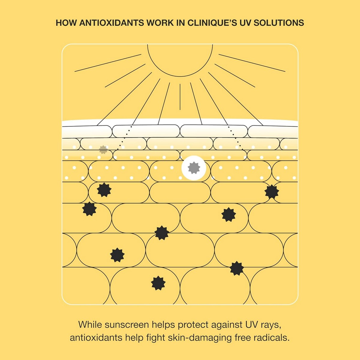 Προστατεύει από τις ακτίνες UV και παρέχει αντιοξειδωτική δράση όλη την ημέρα, βοηθώντας στην αντιμετώπιση των ελευθέρων ριζών που προκαλούν φθορά στην επιδερμίδα.