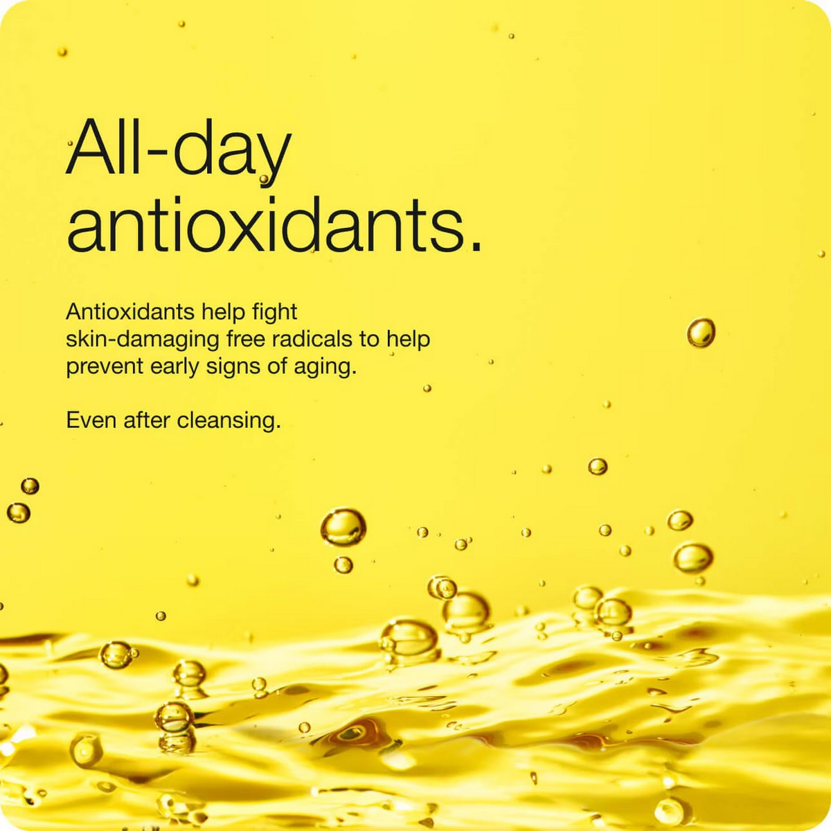Αντιοξειδωτική προστασία όλη την ημέρα: Τα αντιοξειδωτικά απορροφώνται από την επιδερμίδα και βοηθούν στην εξουδετέρωση των ελευθέρων ριζών, συμβάλλοντας στην πρόληψη των πρόωρων σημαδιών γήρανσης - ακόμη και μετά τον καθαρισμό του προσώπου.
