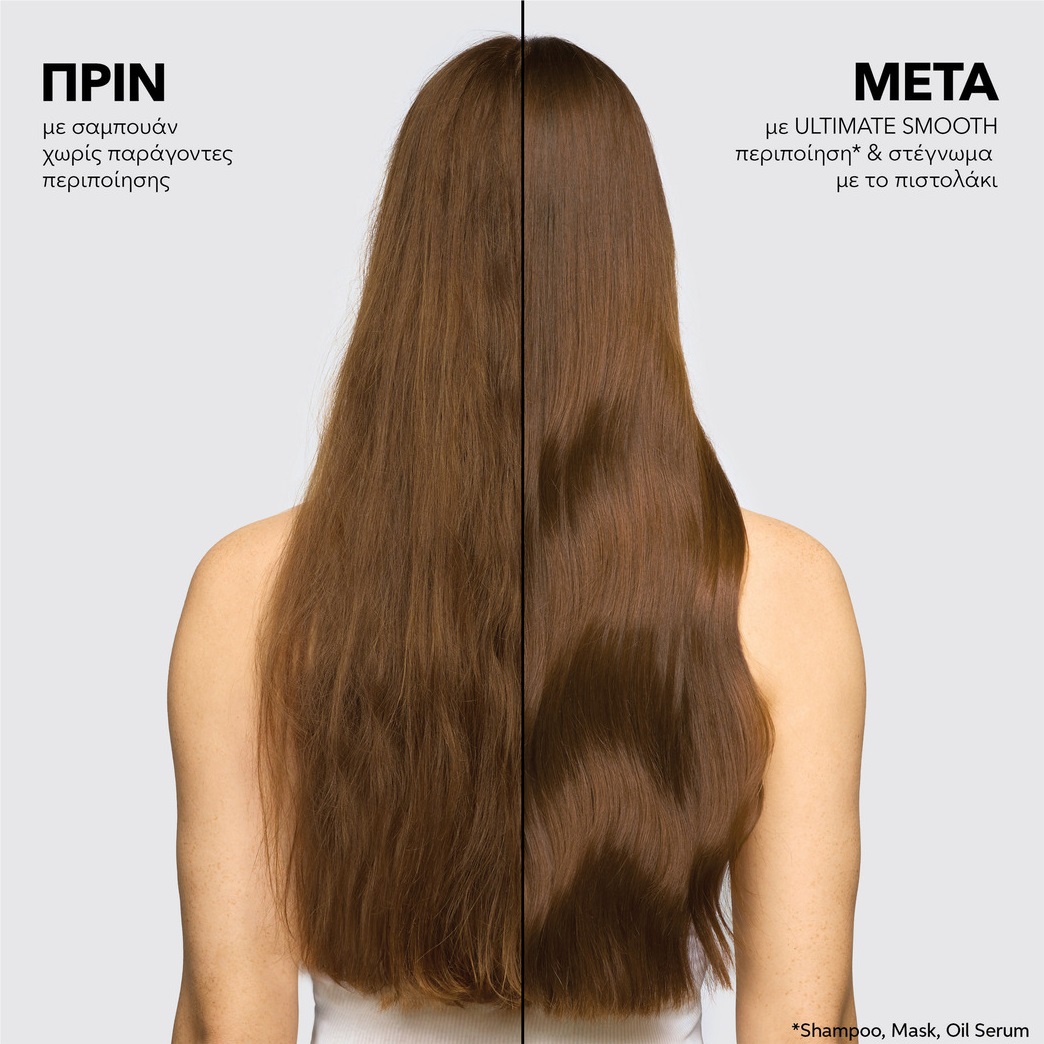 Με πατενταρισμένη τεχνολογία εμπλουτισμένη με Σκουαλάνιο και Ωμέγα-9, το ULTIMATE SMOOTH Conditioner θρέφει σε βάθος τα μαλλιά εσωτερικά, ενώ παράλληλα δημιουργεί ένα προστατευτικό φράγμα στην επιφάνειά τους.