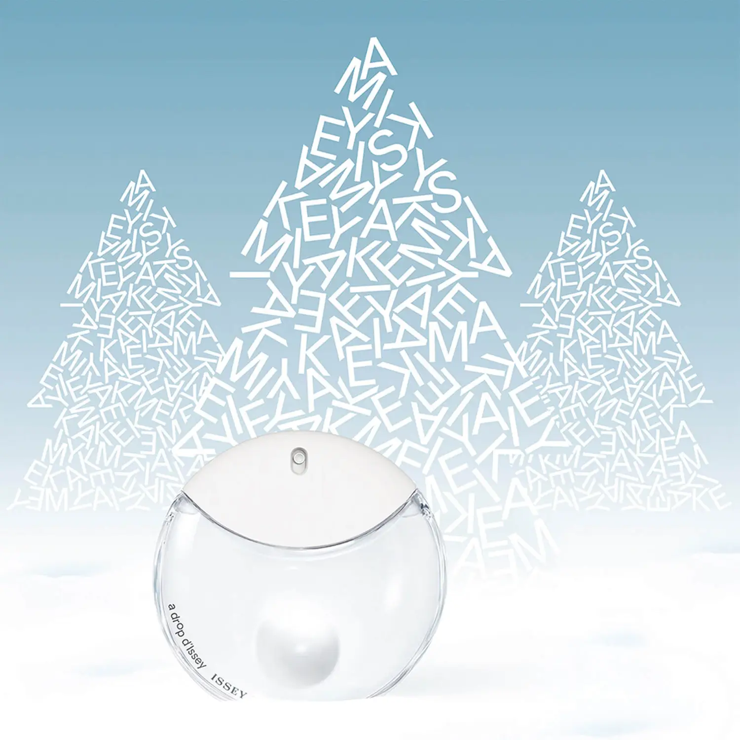 Το A Drop D'Issey, σας προσκαλεί να κοιτάξετε τον κόσμο από μια νέα προοπτική, να ανακαλύψετε την κρυφή ομορφιά και την ποίηση της φύσης. Είναι ταυτόχρονα ένας καθρέφτης, ένας μεγεθυντικός φακός. Ανοίγει το μυαλό σας για να θαυμάσετε ό, τι δεν μπορούν να δουν τα μάτια σας. Αιωρούμενο μπροστά από ένα λιλά λουλούδι που κρυφοκοιτάζει από πίσω του, η σταγόνα αποκαλύπτει μια πεταλούδα που κρύβεται ανάμεσα στα πέταλα, μεγεθύνοντας την ανυποψίαστη ομορφιά της φύσης.