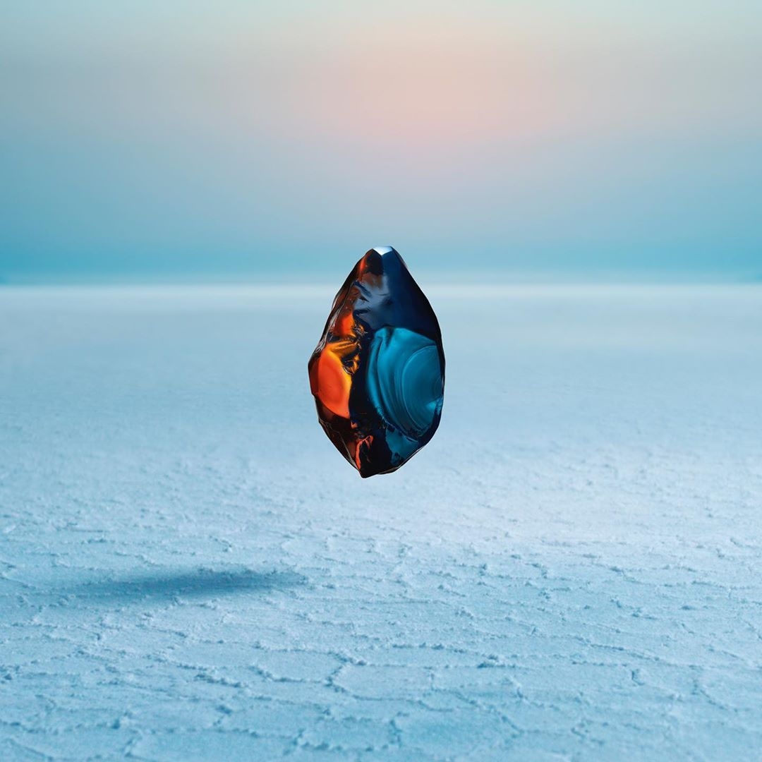 Κάθετο και κομψό, το μπουκάλι ανεβαίνει. Το βαθύ μπλε γυαλί βρίσκεται ανάμεσα στο colbalt και το μπλε-μαύρο με πράσινες αποχρώσεις χρώμα. Το φως λάμπει στο κέντρο του, ενσωματωμένο αλλά ζωντανό. Το λαμπερό μαύρο καπάκι θυμίζει οψιανό, προσεκτικά πολύπλευρο σαν κόσμημα