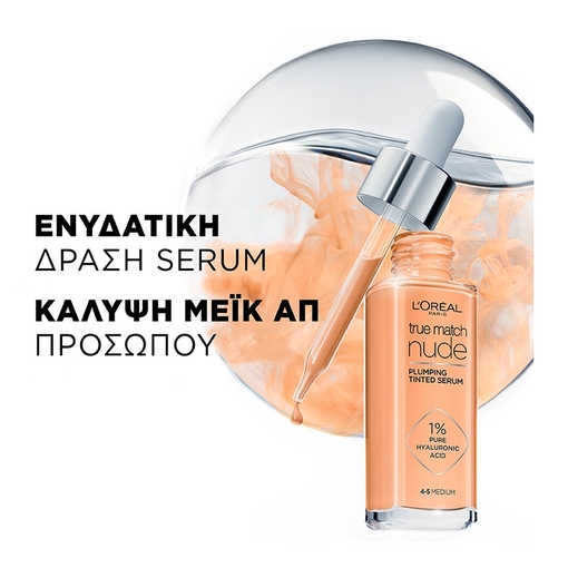 Η L'Oreal Paris συστήνει το νέο True Match Nude Plumping Tinted Serum - O τέλειος συνδυασμός του expertise της περιποίησης επιδερμίδας με τον κόσμο του μακιγιάζ. Η καινοτόμος σύνθεση του με 1% καθαρό υαλουρονικό οξύ ενυδατώνει την επιδερμίδα ενώ παράλληλα εξασφαλίζει με τα luminous pigments της κάλυψη foundation και φυσική λάμψη.