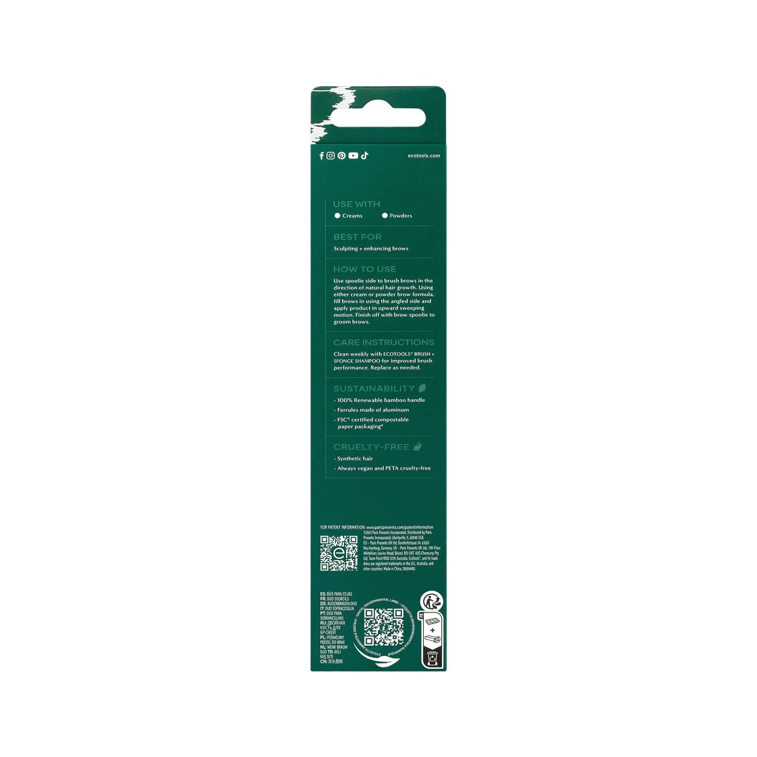 Το πινέλο Eyebrow Duo Brush καθαρίζεται εύκολα με το EcoTools Brush + Sponge Shampoo για ακόμα καλύτερη απόδοση.