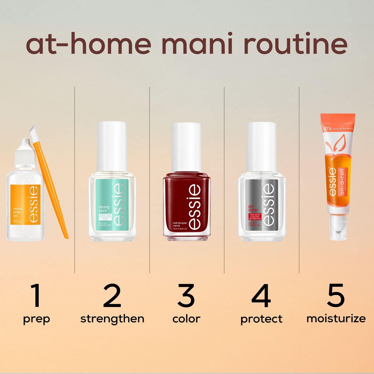 1. Ξεκίνα με μία στρώση από την αγαπημένη σου βάση νυχιών essie.
