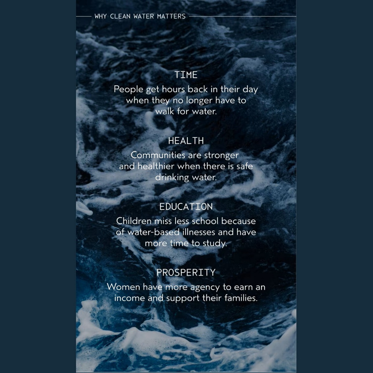 Η πρόσβαση σε καθαρό νερό σημαίνει καλύτερη υγιεινή, περισσότερο χρόνο για εκπαίδευση, οικονομική ανάπτυξη, που αλλάζει ζωές και πολλά ακόμη.