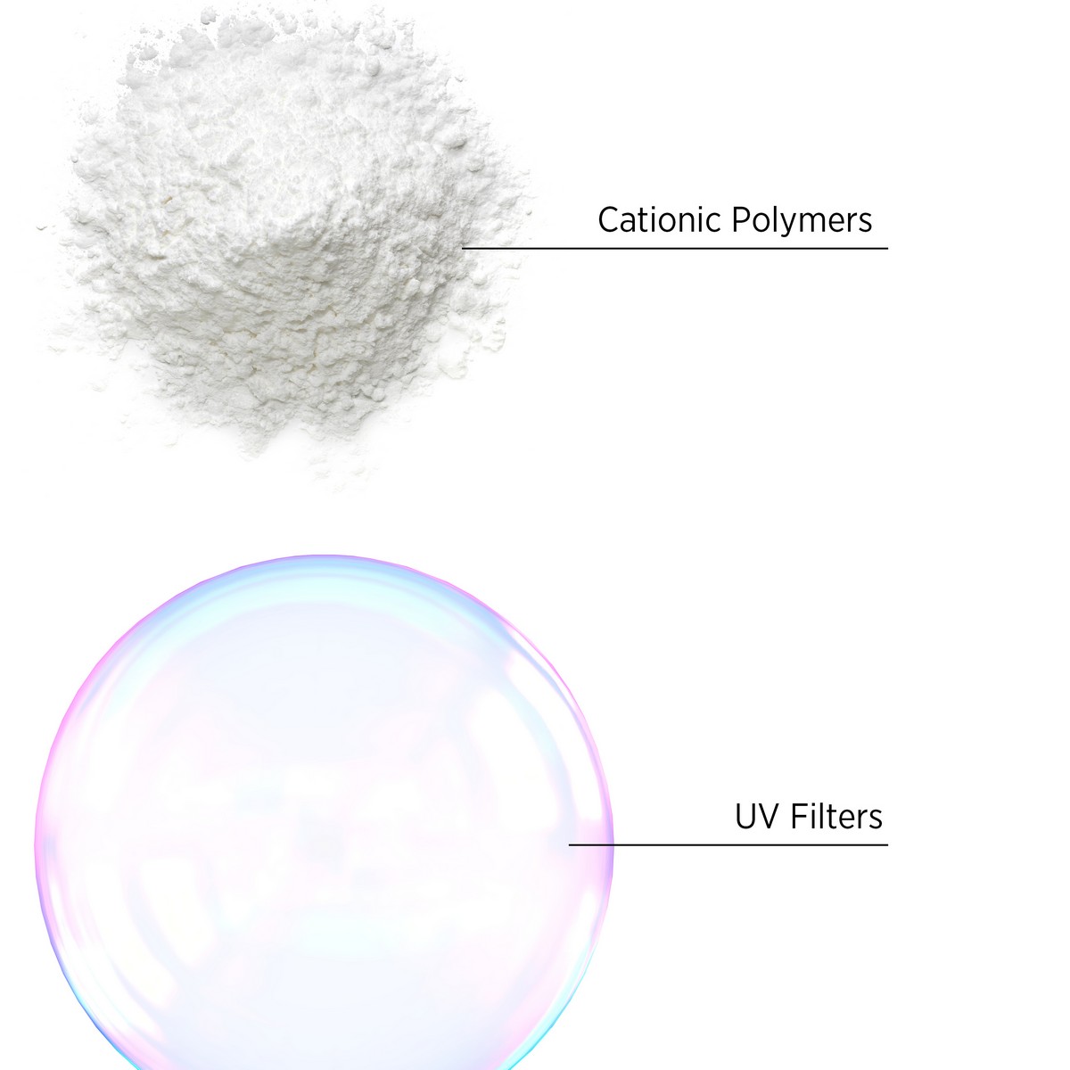 - ‣ Cationic Polymers: Repair damaged parts of the hair.
