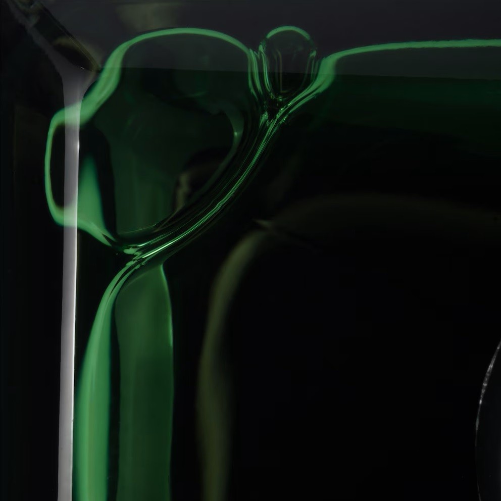 A bottle lacquered in an intense and alluring black to green gradation, the house’s iconic color. The outerbox is etched to echo the brand’s signature Saffiano leather cross-hatching, signed with a silver Prada logo.